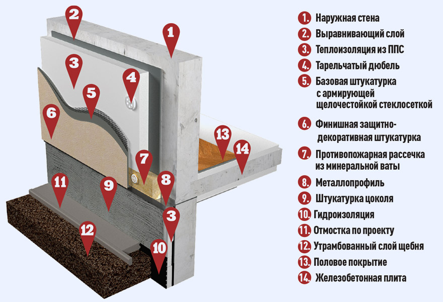Разработан шаблон спецификации в соответствии с ГОСТ Р 21.1101-2013. Стена подвала с теплоизоляцией из пенополистирольных плит ППС25-Т с несущей конструкцией из кирпича. Плиты теплоизоляции точечно приклеивают к наружной поверхности стены подвала после выполнения по ней гидроизоляции и дополнительно крепят анкерами с тарельчатыми дюбелями. Применяется в многоэтажном строительстве.