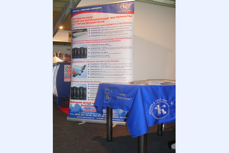 Завод «Мягкая кровля» представил на стенде образцы своей продукции: кровельные гидроизоляционные материалы марки «Рубемаст», «Армокров», рубероид. Грамотные специалисты давали исчерпывающие ответы на интересующие вопросы посетителей. По окончанию выставки ЗАО «Мягкая кровля» вручили Диплом «За производство высокого качества кровельного материала «Рубемаст».