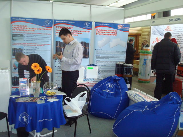 Участие в выставке «Стройиндустрия»- традиция для завода «Мягкая кровля». В этом году на стенде завода была представлена часть Теплого дома из несъемной опалубки. Всю конструкцию дома можно было посмотреть на месте, проконсультироваться со специалистами, ознакомиться с ценами на продукцию. Также были представлены образцы кровли и гидроизоляции: рулонные битумные, модифицированные наплавляемые кровли и рулонные наплавляемые материалы, а также битумы и мастики.