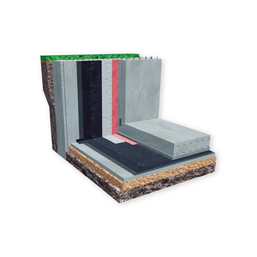 Система гидроизоляции применяется для защиты подземных сооружений различного назначения, которые строятся в котлованах с вертикальным ограждением типа «стена в грунте». Эта система эффективна при любом уровне грунтовых вод, который определяется в ходе инженерных изысканий и учитывается в проекте.