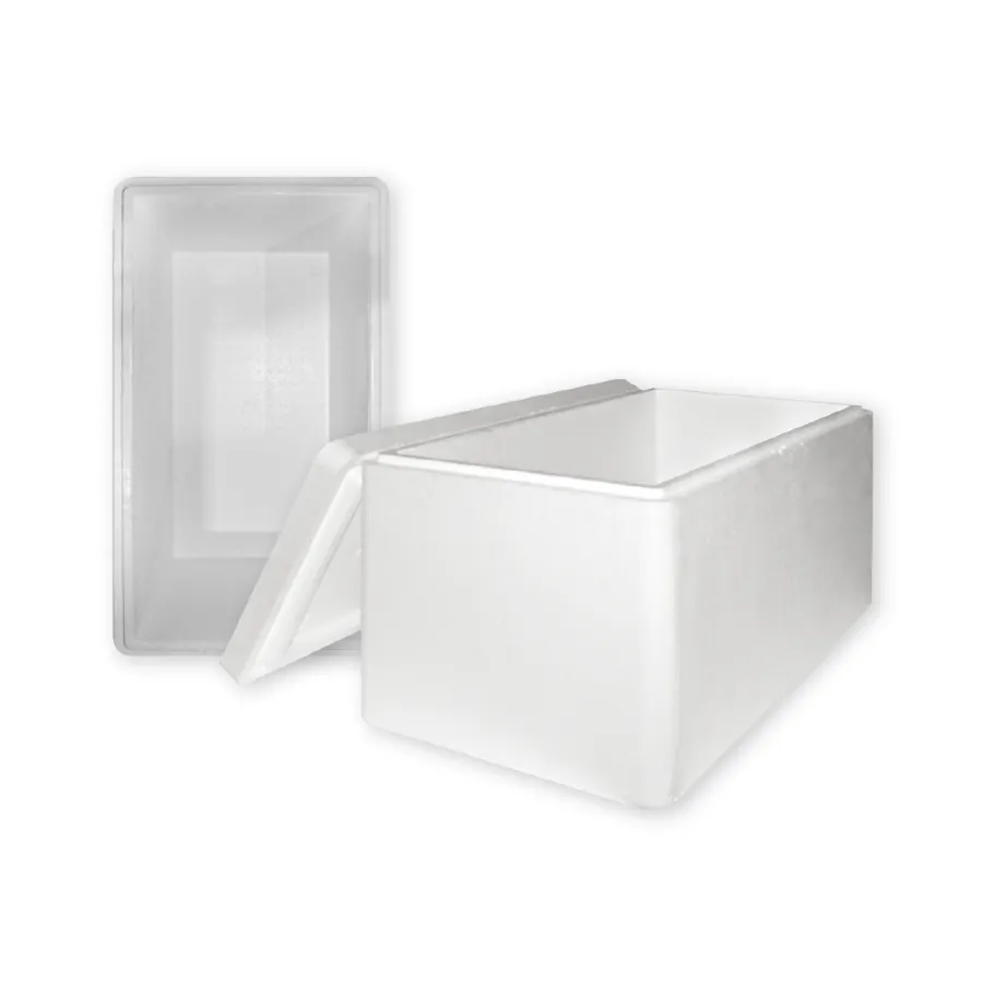 Термоконтейнер из пенополистирола плотностью 20 кг/м3 позволяет хранить и перевозить скоропортящиеся и замороженные продукты. Это хорошая альтернатива специализированным рефрижераторам, поскольку термоконтейнеры могут перевозиться с другими грузами на обычных транспортных средствах. Размеры: длина 520 мм, ширина 420 мм, высота 330 мм, внутренний объем 40 л.