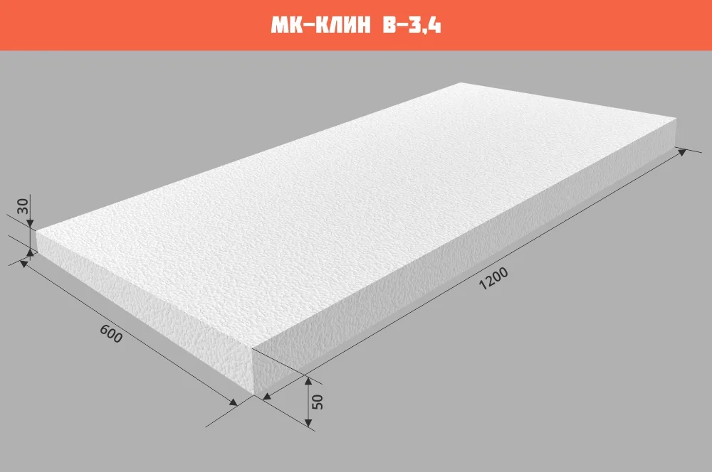 Уклонообразующие элементы изготавливаются из пенополистирола марки ППС 20 Р-А по ГОСТ 1588-2014 с прочностью на сжатие при 10% линейной деформации не менее 120 кПа. По сравнению с классическими способами разуклонки использование МК-КЛИН позволяет производить монтажные работы без применения «мокрых процессов» в устройстве кровли и облегчает нагрузку на перекрытия. Также существенно сокращает время выполнения работ.
